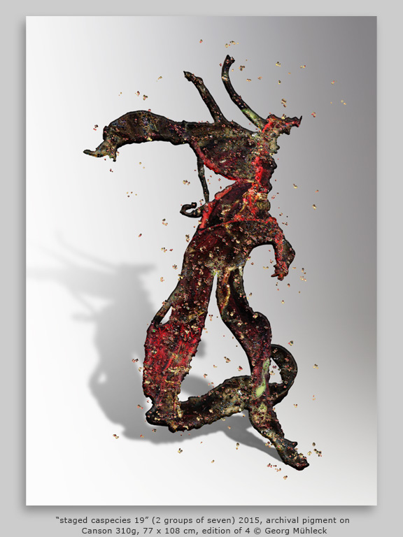 “staged caspecies 19” (2 groups of seven) 2015, archival pigment on Canson 310g, 77 x 108 cm, edition of 4 © Georg Mühleck